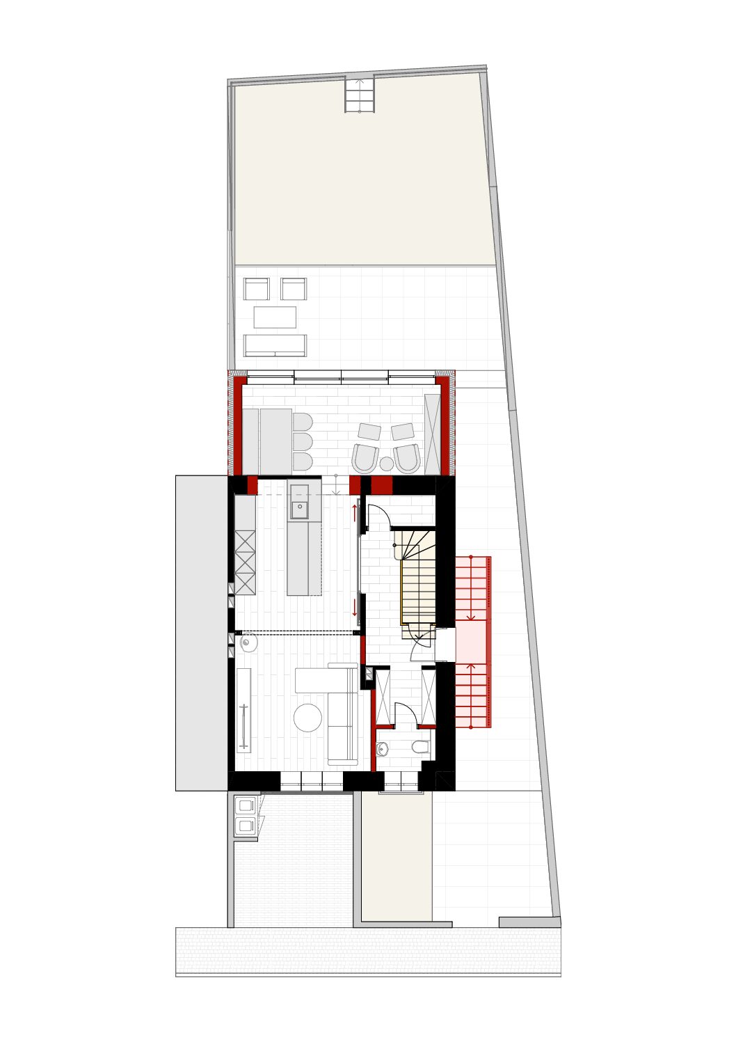 This extension project in Beggen, Luxembourg introduces a bright and cohesive living space dedicated to dining and reading. The design is defined by a strong, carefully selected accent color—a deep blue—used consistently across custom joinery, furniture elements, and subtly echoed in exterior features, creating a clear visual identity. Large glazed openings bring in abundant natural light and connect the interior with the garden, enhancing the sense of openness. The reading corner is anchored by a bespoke bookshelf wall, complemented by warm textures and a contrasting statement armchair, while the dining area maintains a calm, minimalist atmosphere with natural materials and soft tones. Overall, the extension balances functionality and character, using color as a unifying architectural element that ties together interior and exterior spaces.