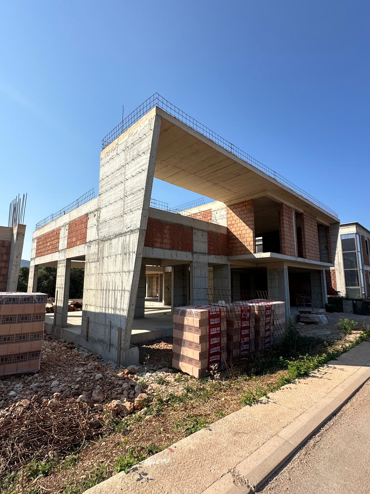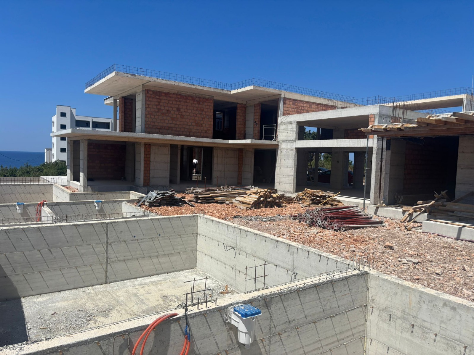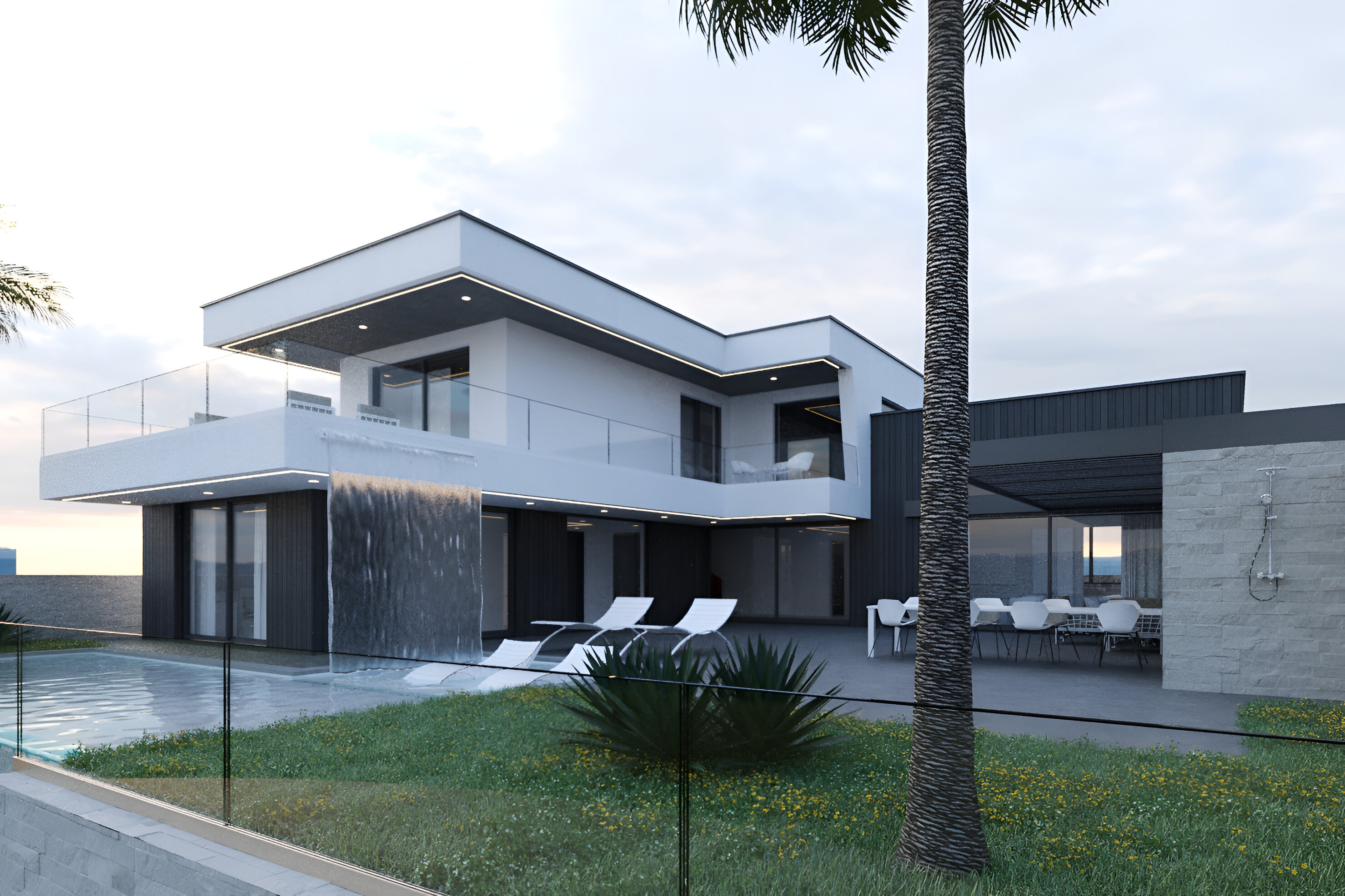 Gemini said Situated along the breathtaking Montenegrin coastline, Villa Croatia is a striking example of contemporary rectilinear architecture that masterfully blends form and function. The villa's design hinges on intersecting geometric volumes, featuring a prominent, textured white cantilevered upper level that floats above a dark, vertically clad ground floor to provide natural passive shading. Expansive floor-to-ceiling glazing and frameless glass balcony balustrades dissolve the boundary between interior spaces and the outdoors, maximizing the sweeping, unobstructed seaside views. This fluid indoor-outdoor connection continues onto a generous dark-paved terrace, which anchors an al fresco dining area under a sleek pergola and a stunning infinity-edge pool accented by a transparent glass retaining wall. Crisp modernist lines and integrated LED soffit lighting complete this sophisticated, light-filled coastal retreat.